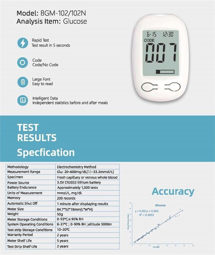 Lysun Diabetic Test Blood Sugar Blood Glucose Test Meter